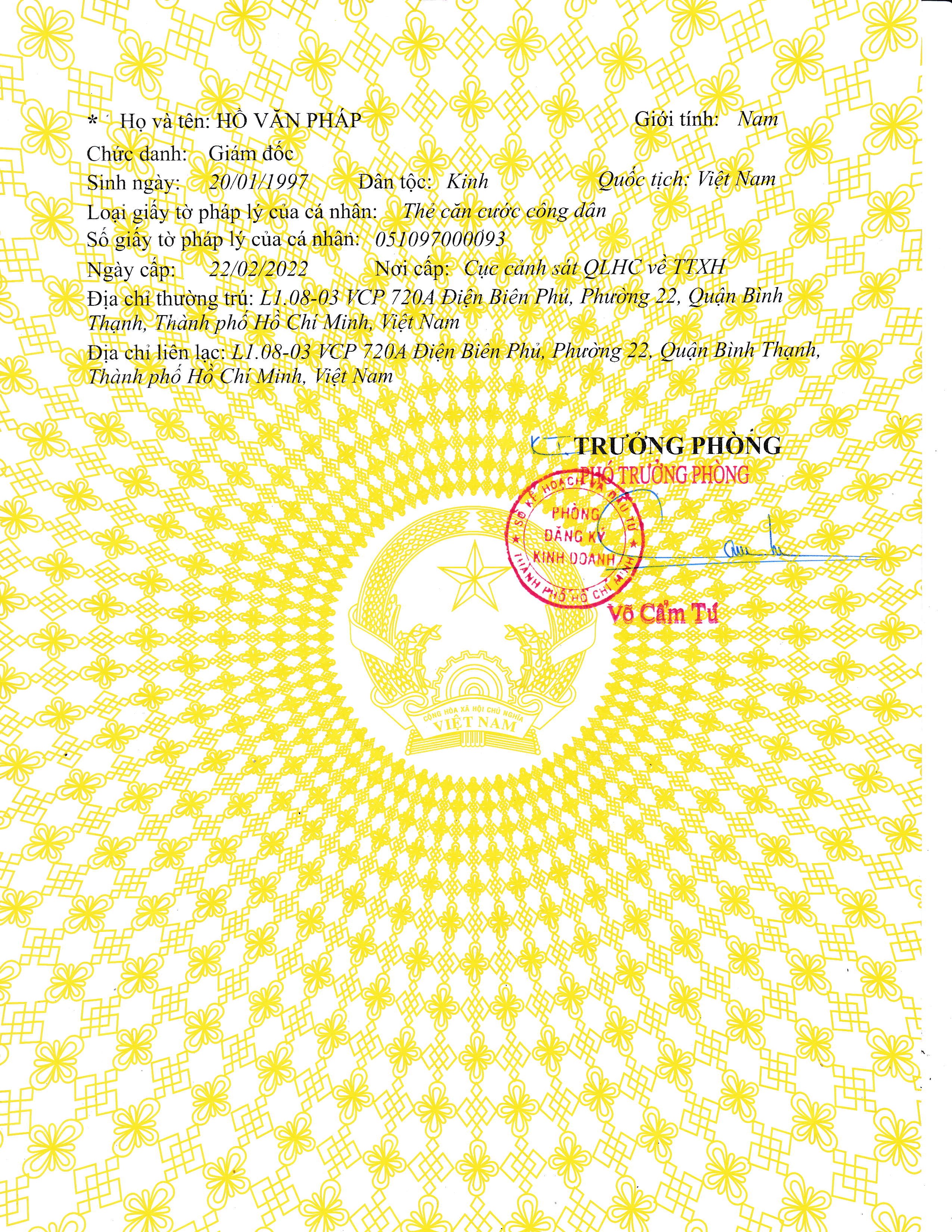 - Cơ quan cấp: Sở Kế hoạch và Đầu tư Thành phố Hồ Chí Minh