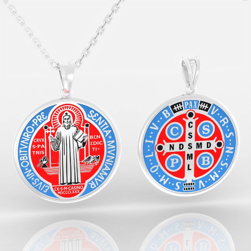 Rich in spiritual meaning, the Saint Benedict Pendant is a powerful symbol of protection, peace, and unwavering faith. This unique double-sided design features Saint Benedict holding a cross and the Holy Scriptures on one side, and the Saint Benedict Medal on the other - engraved with sacred initials believed to ward off evil and bring blessings.